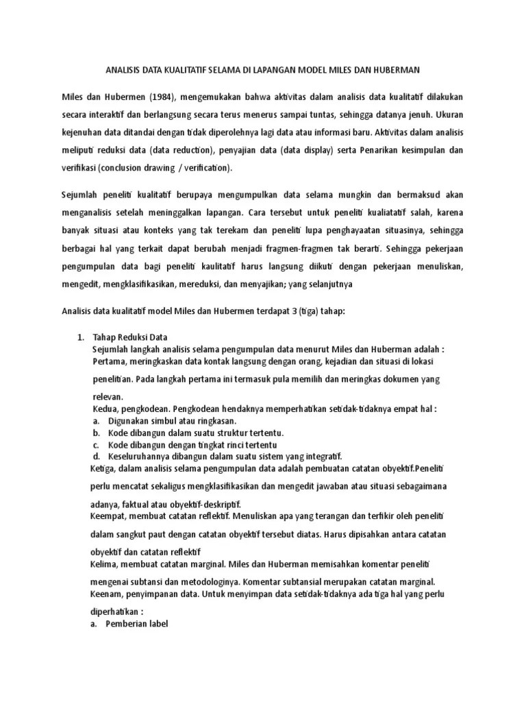 Berikut merupakan model analisis data interaktif miles dan huberman dapat digambarkan. Teknik analisis data model miles dan huberman. Pada gambar di bawah ini diilustrasikan bagaimana mereduksi data hasil . Rumah sakit panti nirmala dipilih karena dari hasil observasi sebelumnya,. Hasil penelitian ini adalah timbulnya perselisihan dengan.